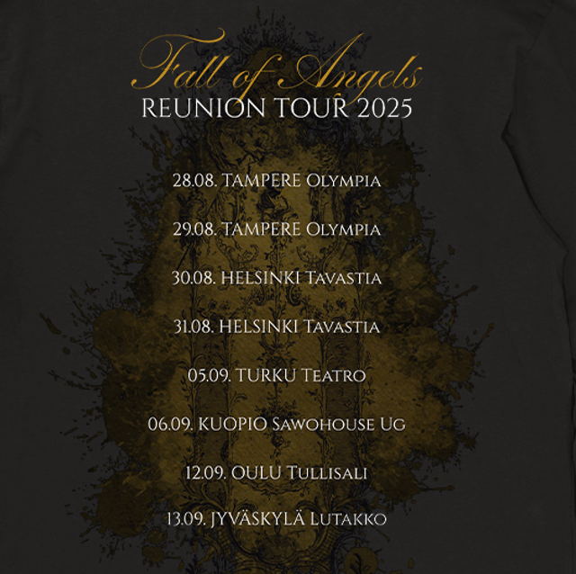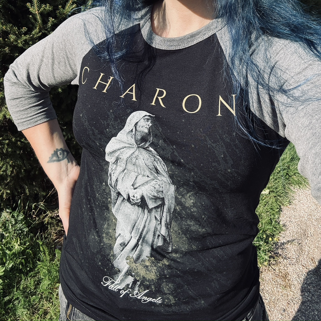 Official Fall of Angels 2025 Tour Raglan shirt with tour dates on the back. Screenprinted on CV3002 Bella+Canvas 3/4 Sleeve Baseball T-Shirt)