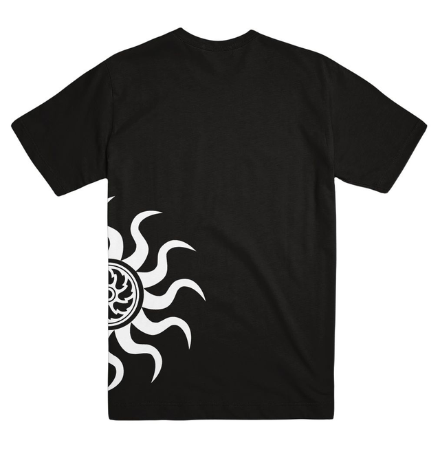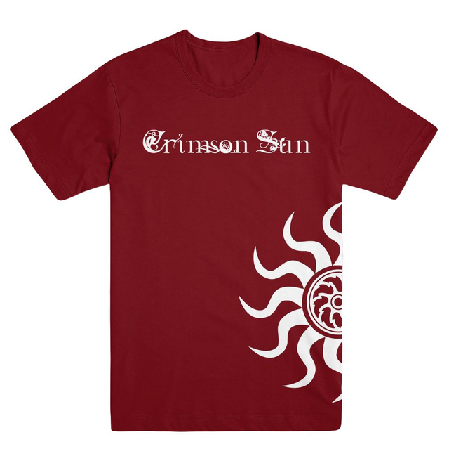 Crimson Sun - wrap-around logo T-Shirt with the Crimson Sun logo - image wraps along the side from front to back. Printed on Gildan Heavy Cotton. Shipped directly from the band.