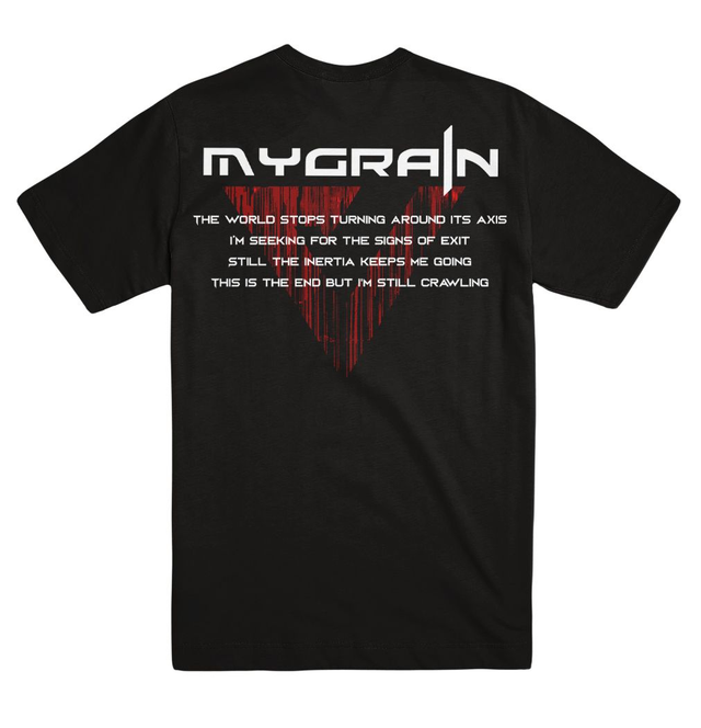 MyGrain - "V" Album Cover T-Shirt. Lyrics from "Haunted Hearts" on back. Screenprinted on Gildan Heavy Cotton