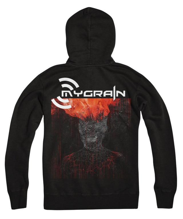 MyGrain - zipper hoodie, screenprinted logo on front and "V" album cover design on the back. Printed on Fruit of the Loom Classic Sweat.