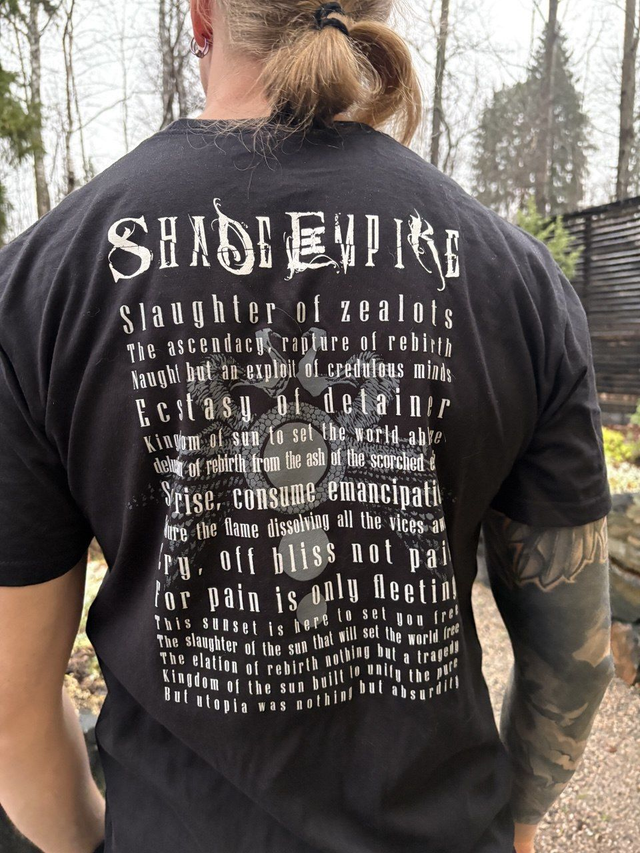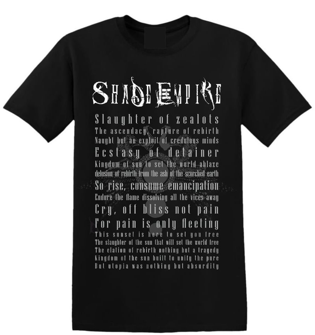 Shade Empire - T-Shirt - "All Consuming Flame". Screenprinted logo on front and lyrics on back. Official artist merchandise.